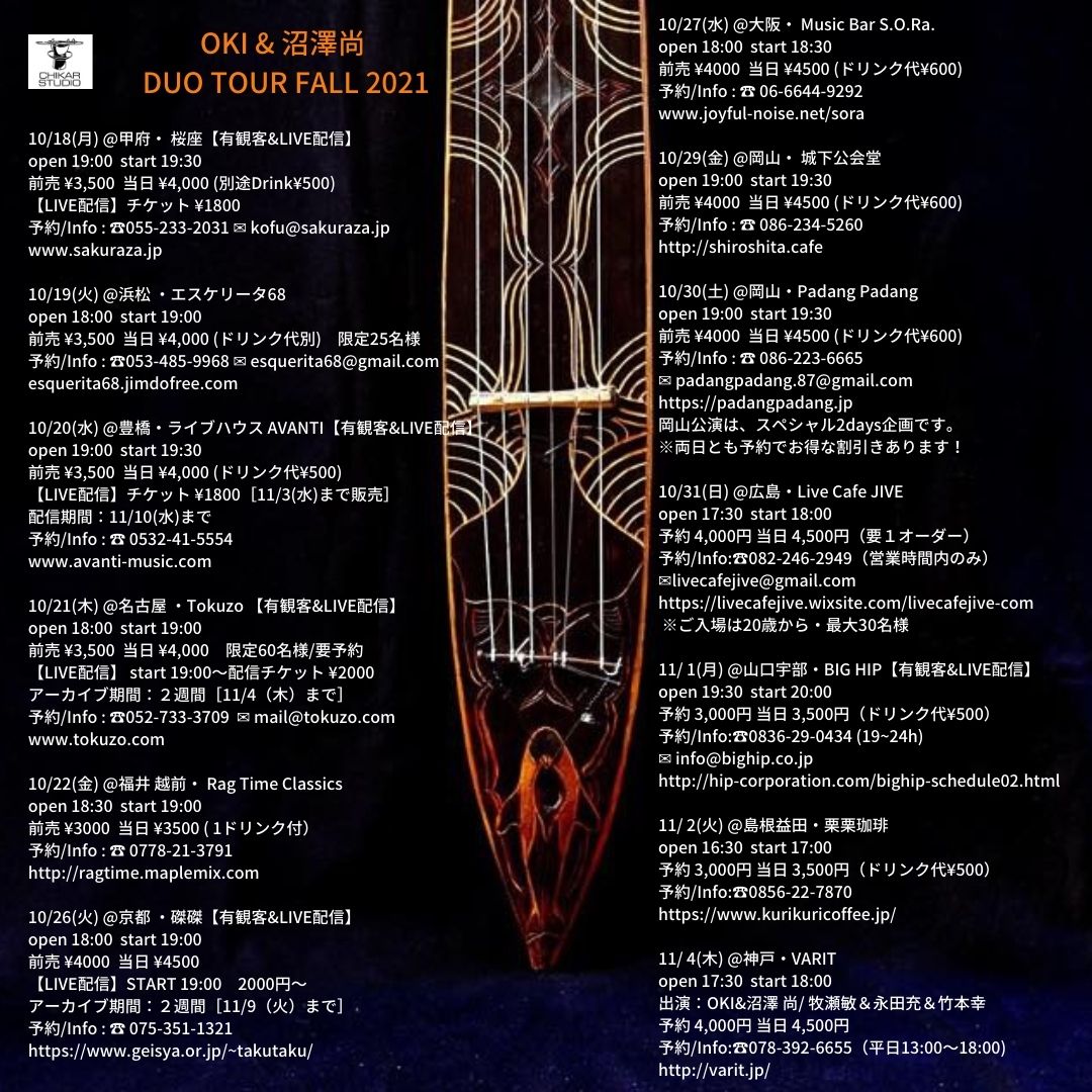「OKI & 沼澤尚 DUO TOUR FALL 2021」