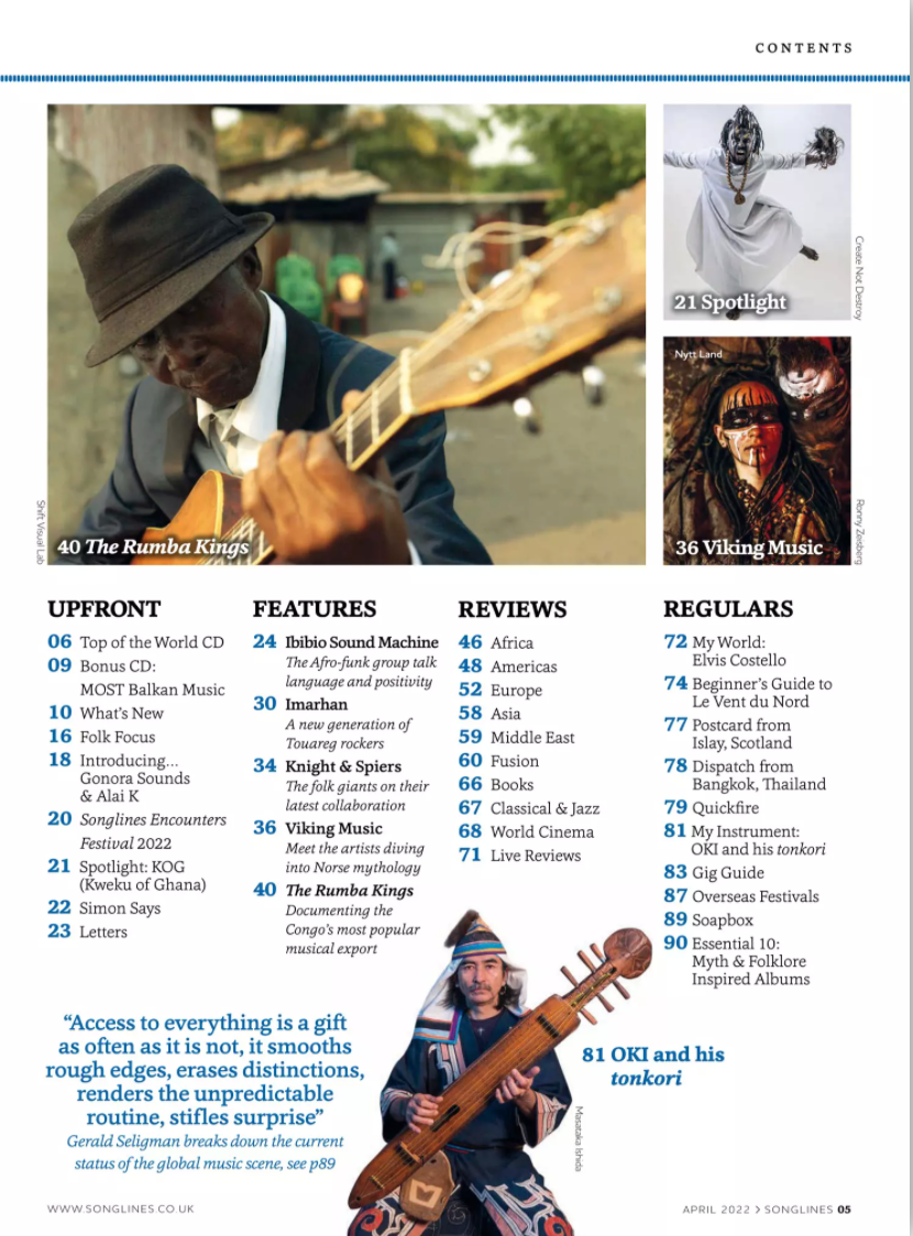 英・ワールドミュージック専門誌「Songlines」にもOKIの新譜紹介掲載